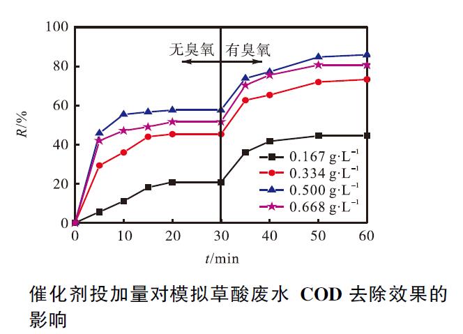 臭氧催化劑投加量對(duì)模擬草酸廢水COD 去除效果的影響