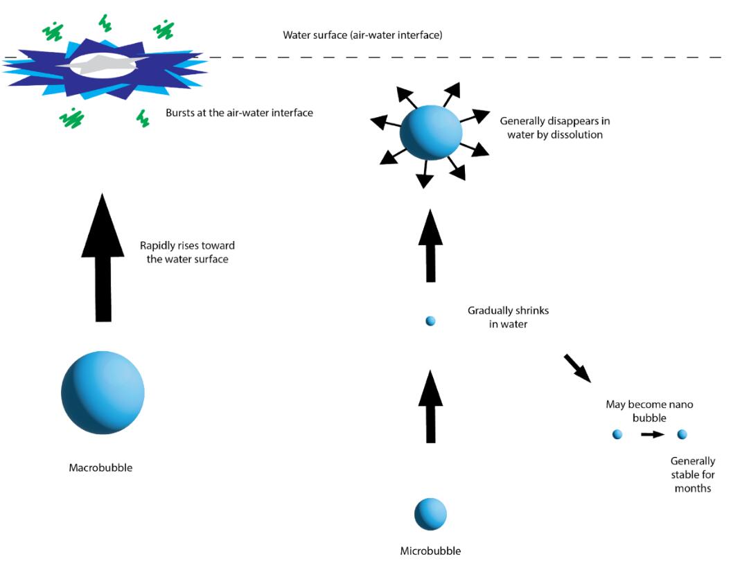 納米氣泡的定義是它們在水中的獨特性質。這些獨特的特性可能有助于將臭氧/氧氣溶解到某些水中。此外,臭氧因自然半衰期衰變而恢復為氧氣后,剩余的氧納米氣泡可能會繼續溶解在水中,并長時間氧化水中的化合物。有報道稱納米氣泡在水中停留數周。